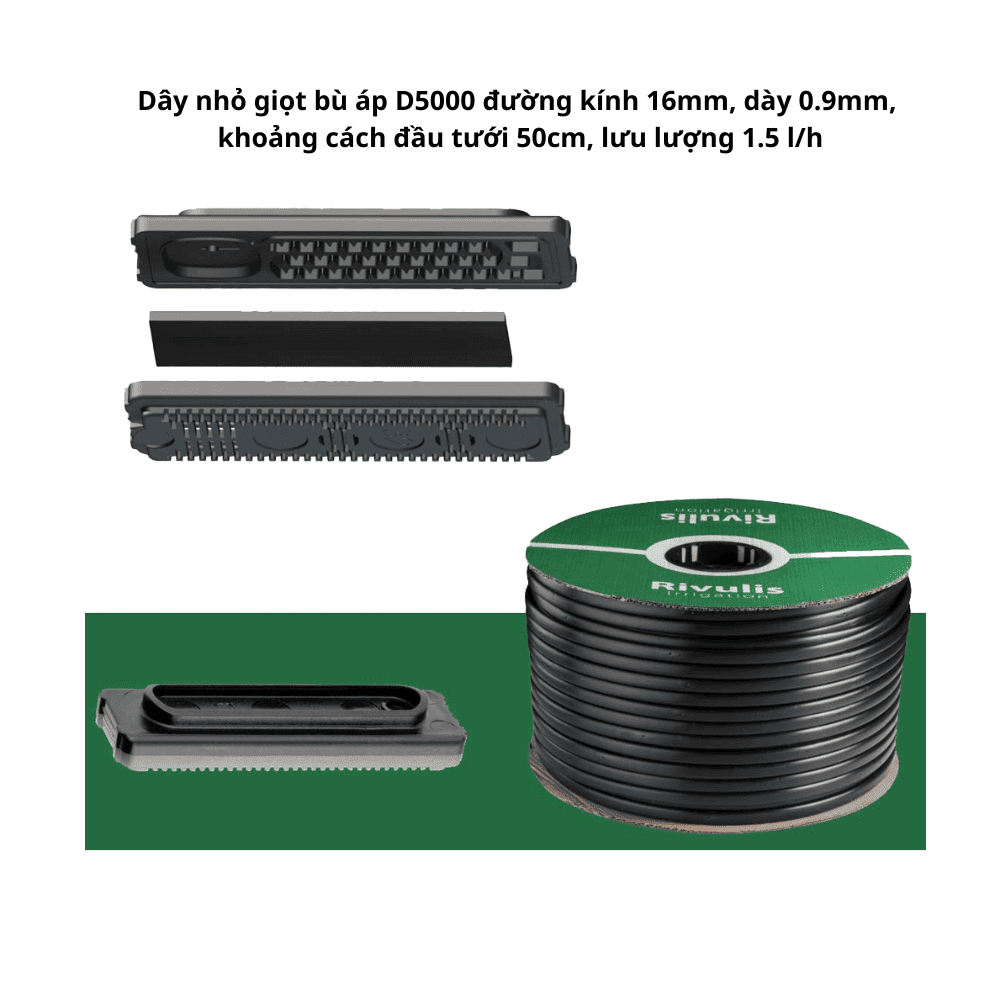 Dây nhỏ giọt bù áp, đường kính 16mm, khoảng cách đầu tưới 50cm